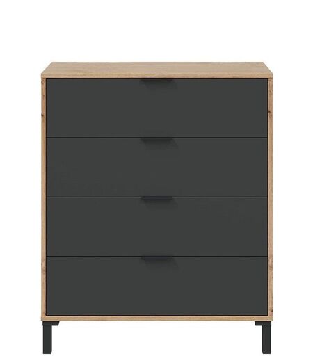 Calicosy Commode 4 Tiroirs Effet Bois Et Gris Anthracite - L77,5 X H93,5 Cm