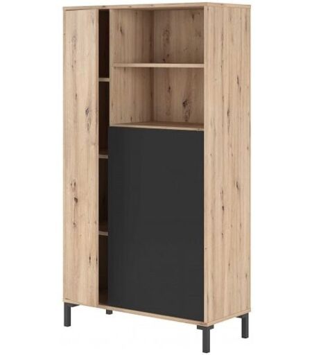 FORES Vitrine de séjour 77x141x33 cm avec 2 portes chêne noueux et gris anthracite – Florence