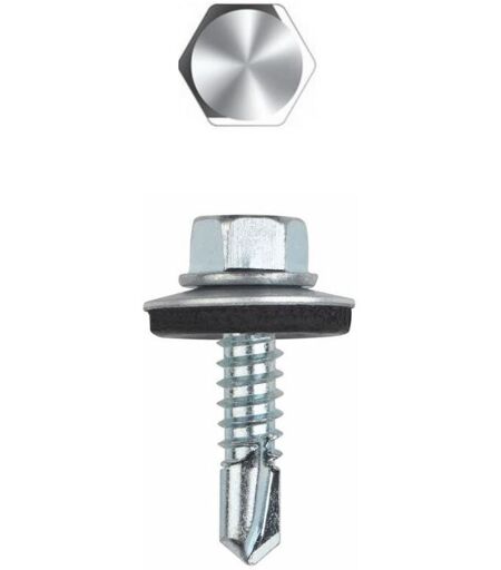 Vis autoperceuse - Tête hexagonale avec collerette estampée - Rondelle vulcanisée Acier/EPDM - Zingué 5,5 x 75 P16 - Boite de 250 ...