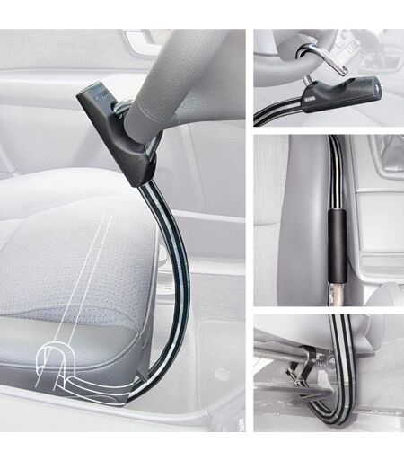 Antivol BUNKER haute protection.Distance minimale volant-siège : 80cm. Tout savoir sur l'article Antivol voiture Canne articulée Haute sécurité Volant Siège 80cm de la marque ARTAGO Antivol voiture volant-siège, canne articulée, longueur minimum siège/volant : 80 cm. A utiliser si la structure du siège dispose d'un point résistant à moins de 77 cm du volant. Le plus rapide et facile à utiliser, toujours à portée de main, puisqu'il n'est pas nécessaire de le démonter pour conduire ; simplement le plier sous le siège et vous profiterez de l'antivol le plus pratique et le plus résistant du marché. S'accorde parfaitement avec l'intérieur de votre voiture. Idéal pour volant réglable en hauteur. Arc basculant en acier, anti-sciage. En acier endurci au carbone, anti-sciage et anti-cisaille, avec billes en acier usiné. Serrure avec bille anti-perçage et anti-crochetage, 3 clefs. Fabriqué en Europe avec la technologie la plus avancée. ...