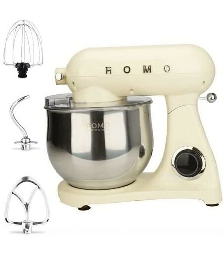 Robot Batteur Patisserie avec Fouet, Batteur, Crochet, Bol d'Acier Inoxydable 8L, 6 Vitesses Faible Bruit Patisserie, Romo