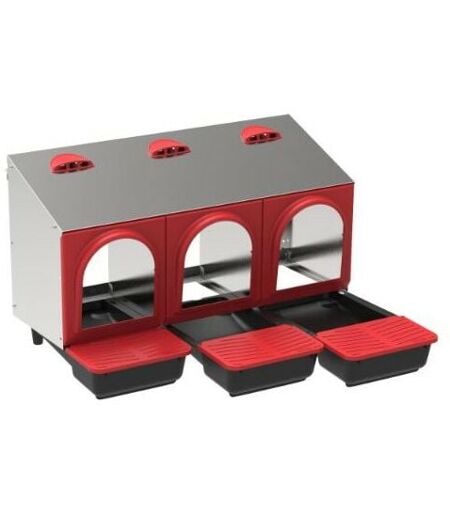 Nid de poulet Nid de poules d'intérieur galvanisé , nid pour poules à 3 compartiments, idéal pour 12/14 poules . Recommandé pour 18 poules . Permet aux poules de pondre dans un endroit intime et confortable. Plateau facilement amovible en plastique 100% antiseptique. Possibilité de le poser directement sur le sol sans compromettre les œufs protégés dans le dépôt du plateau inférieur. Le nid de zone dispose d'une réserve d'œufs d'une capacité allant jusqu'à 6 œufs, ce qui empêche la poule de les picorer. Il peut être facilement retiré pour le nettoyage et la désinfection. Plateau à texture rugueuse qui permet une meilleure adhérence des pattes des poulets , améliorant ainsi le confort de l'animal. Mesures 78x45x48 cm. Caractéristiques du produit : Permet aux poules de pondre dans un endroit intime et confortable. Plateau facilement amovible en plastique 100% antiseptique. Possibilité de le poser directement sur le sol sans compromettre les œufs protégés dans le dépôt du plateau ...