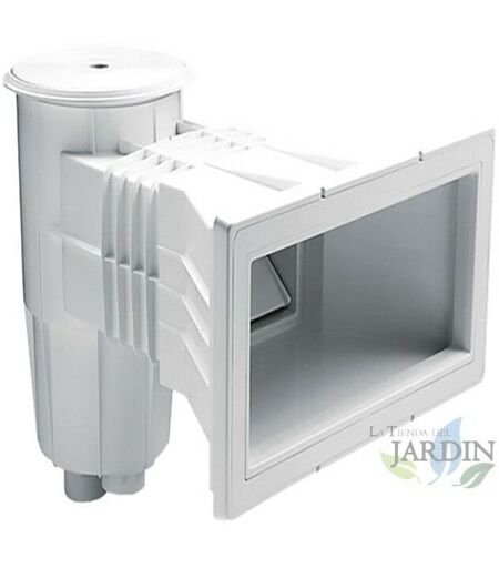 Skimmer 15 litres piscine béton blanc Skimmer de 15 litres avec bouche élargie et couvercle circulaire pour piscine en béton. La bouche élargie offre une plus grande capacité de capture de la saleté de la feuille d'eau. Avec traitement anti-UV sur les parties non enterrées. Fabriqué en ABS, avec flotteur et clapet pour la régulation du débit. Raccordements : Raccordement inférieur d'aspiration : filetage interne 1½, externe 2. Raccordement simultané à l'évacuation : interne Ø 50. Raccord supérieur pour l'évacuation de l'excès d'eau Ø 40. Comprend panier collecteur de feuilles. Débit recommandé : 5 m³/h. Il est recommandé d'installer un écumeur tous les 25 m² de surface d'eau. Fabriqué en Espagne. Caractéristiques du produit : Écumoire de 15 litres avec bouche élargie et couvercle circulaire Traitement anti-UV sur parties non enterrées Fabriqué en ABS avec porte flottante et clapet Comprend un panier de collecte de feuilles Questions fréquemment posées : Quelle est la capacité de ...