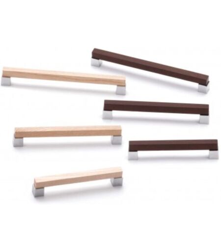 Poignée qui combine le bois de frêne ou hêtre finie en couleur wengué, avec embases métalliques. Une option très originale pour divers types de meubles. ...
