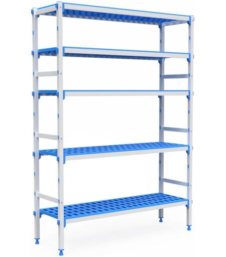 Rayonnage en aluminium anodisé spécial et clayettes en polypropylène alimentaire, idéal pour chambre froide, avec 5 niveaux. Ce rayonnage inoxydable résiste à la chaleur comme au froid, d'une température allant de -30°C jusqu'à +75°C. Robuste et très résistant, il peut supporter une charge maximale de 150 kg par niveau et une charge maximale de 420 kg au total. Cette étagère est adaptée aux dimensions gastronorme 1/1 et peut recevoir des bacs GN en inox ou en polycarbonate à la place des clayettes, ce qui permet de créer différentes combinaisons pour le stockage alimentaire. A choisir en fonction de la longueur. Dimensions : P 555 x H 1750 mm Espace entre les deux niveaux du haut : 255 mm Espace entre les deux niveaux du bas : 405 mm Montage facile et rapide sans outils. Marque : Pujadas Clayettes avec un dessin : donne une meilleure robustesse et un appui très ferme et solide sur la structure. Anti-corrosion Système spécial de fixation des supports pour longerons qui offre une ...