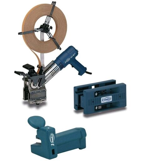 KIT AG52 VIRUTEX (AG98F + AU93 + RC21E) Plaqueuse de chants manuelle VIRUTEX AG98F - Appareil thermique à plaquer les chants - Pour le placage des chants préencollés en PVC, polyester, mélamines et bois - Possibilité de plaquer des panneaux circulaires ou courbes - Précision et stabilité de l'appareil grâce à ses presseurs et guides réglables - Possibilité de plaquer des chants calibrés ou avec excédents des deux côtés du panneau - Appareil fourni avec dévidoir de chant plus système pratique de coupe en bout Araseur de chants VIRUTEX AU93 - Araseur de chants double - Permet l'arasage simultané, des deux côtés du panneau, proprement et sans avoir à faire de retouches ultérieures - Capacité d'arasage pour des chants de largeurs allant jusqu'à 40 mm - Se transforme facilement en deux araseurs indépendants pour travailler sur de plus grandes largeurs - Muni de lames doubles de grande qualité, longue durée et changement facile Coupe en bout VIRUTEX RC21E - Coupe nette et précise en bout de ...