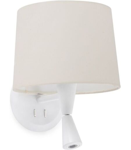 Applique murale modèle CONGA créé par Faro Lab. Cette applique avec lecteur blanche et avec un abat-jour en textile beige est idéal pour éclairer les chambres et les salons. Cette lampe est compatible avec une source lumineuse E27 non incluse. ...