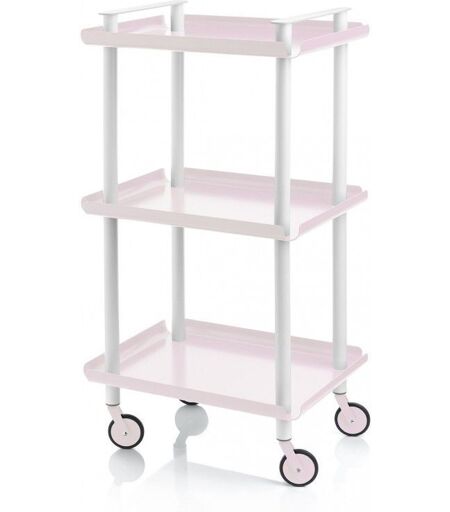 Don Hierro - Desserte À Roulettes, Desserte De Service Leky, 3 Plateaux. Structure Métallique Tube À Double Montant Blanc-Rose