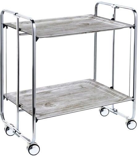 Don Hierro - Table Roulante Pliante Bauhaus, 2plateaux, Châssis Chromé-Pin Vieilli