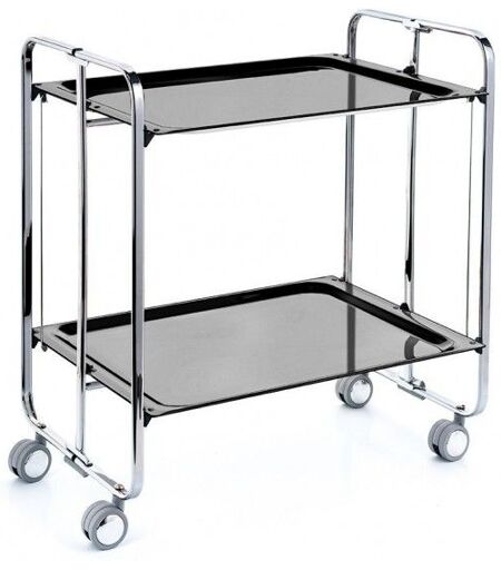 Don Hierro - Table Roulante Pliante Bauhaus, 2plateaux, Châssis Chromé-Noir