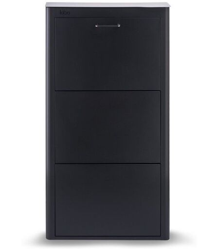 KIBO est le nouveau meuble à chaussures au design compact et minimaliste, avec une grande capacité pour stocker jusqu'à neuf paires de chaussures.Tout sera parfaitement rangé dans les trois grands compartiments. De plus, il posséde un compartiment sur la partie supérieure pour ranger les brosses, le cirage et autres accessoires.KIBO prend peu de place et offre une grande capacité de stockage. En raison de ses dimensions, KIBO est parfait pour être placé dans des espaces réduits tels que des couloirs ou derrière des portes, par exemple.Son système d'ouverture articulé permet d'ouvrir tous les compartiments en même temps, de choisir le plus adapté en un coup d'¿il, et de ne pas avoir à se pencher pour ouvrir les compartiments inférieurs.Structure métallique robuste et solide. Le revêtement en poudre de polyester prévient la corrosion dans un environnement humide et peut garantir une longue durée de vie pendant de nombreuses années. Il s'agit d'une solution durable par rapport aux méthodes de peinture traditionnelles. La poudre fluide confère de la dureté à la surface, ce qui la rend plus résistante aux intempéries, à l'écaillage et à la décoloration.Il dispose d'un système breveté de perforations internes qui favorisent la circulation de l'air. Ce système est très important car il empêche la condensation de l'humidité qui se produit très fréquemment dans les meubles en bois, mélamine, etc. Les bords du meuble sont arrondis pour une meilleure ergonomie, améliorant considérablement son esthétique et évitant les dangers d'arêtes vives.Il dispose d'une poignée en acier inoxydable qui facilite son ouverture facile.Conçu pour l'ancrer au mur. Livré avec un jeu de vis. Accrochez-le en hauteur au-dessus de la plinthe pour maintenir une distance optimale entre le meuble et le mur.Disponible en blanc, noir et sable, tous légèrement texturés. Nettoyage facile:-Utiliser un chiffon humide.-Ne pas utiliser de produits de nettoyage chimiques.Dimensions: 105 ( Hauteur ) 56,5 (Largeur ) 14 ( Profondeur ); avec le couvercle: 16 ( Profondeur ) cm.La profondeur du tiroir ouvert est de 31 cm, mais même les chaussures plus longues que 31 cm peuvent y entrer sans problème si vous les placez en légère diagonale.Le support à chaussures KIBO est livré assemblé et ne nécessite aucun assemblage. ...