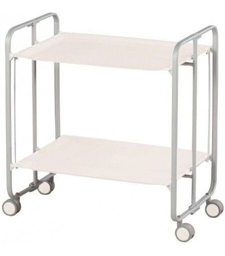 Don Hierro - Table Roulante Pliante Bauhaus, 2 Plateaux, Châssis Gris Aluminium.-Blanc