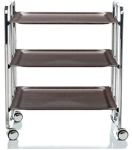 Don Hierro - Table Roulante Pliante Bauhaus, 3 Étages, Châssis Chromé.-Wengé
