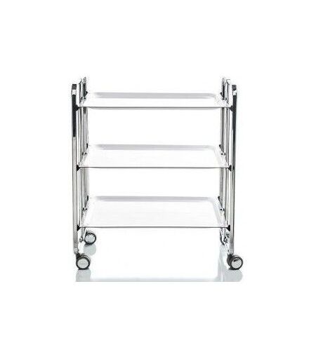 Don Hierro - Table Roulante Pliante Bauhaus, 3 Étages, Châssis Chromé.-Blanc