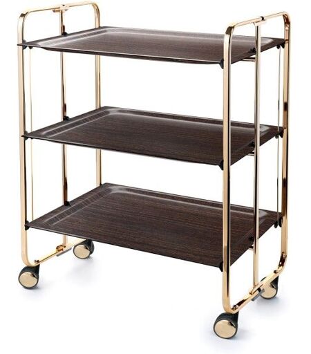 Don Hierro - Table Roulante Pliante Bauhaus, 3 Étages, Châssis Doré.-Wengé