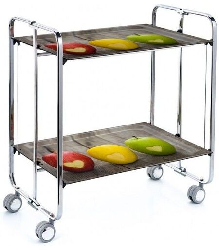Table roulante pliante BAUHAUS, 2 plateaux.Cette table roulante pliante deviendra vite un accessoire indispensable. Elle permet d'amener à table les plats et les boissons en un seul voyage et grâce à elle vous aurez toujours à main tout ce dont vous avez besoin sans surcharger la table.4 positions possibles: pliée pour être rangée et utiliser un minimum d'espace, semi-pliée pour pouvoir s'en servir de table d'appoint, semi-fermée pour pouvoir s'en servir en utilisant un espace moindre et ouverte pour une utilisation maximale des 2 plateaux.Châssis Chromé - plateaux stratifiés de votre choix.Fabriquée en Espagne.Matières: Châssis metallique - plateaux stratifiésSon nettoyage est très simple:- Utilisez un chiffon humide.- N'utilisez pas de produits chimiques.Conseil d'entretien: Nettoyer avec une éponge non abrasive et humide puis essuyer avec un chiffon sec.Dimensions table:- pliée 86 ( Hauteur ) 71 (Largeur ) 9 ( Profondeur ) cm. - ouverte: 72 ( Hauteur ) 66 (Largeur ) 43 ( Profondeur ) cm.C'est un article fonctionnel et décoratif pour la cuisine, le salon, la terrasse, etc... ...