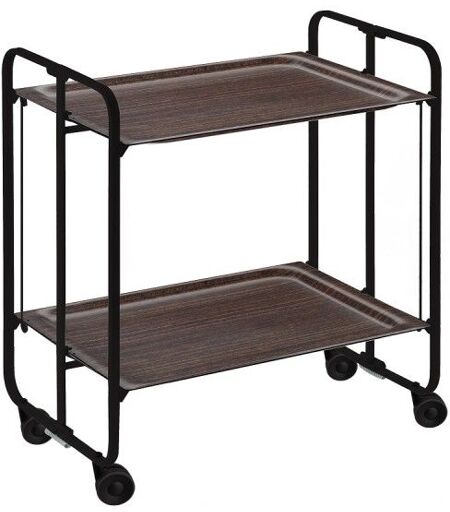 Don Hierro - Table Roulante Pliante Bauhaus, 2 Plateaux, Châssis Noir-Wengé