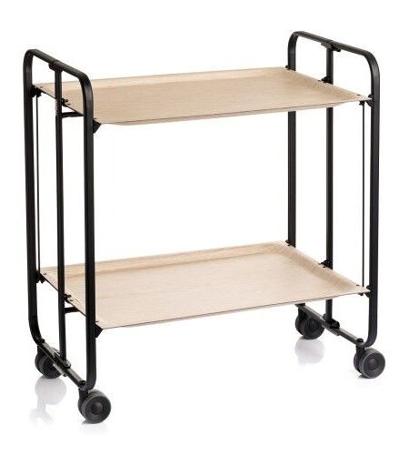 Don Hierro - Table Roulante Pliante Bauhaus, 2 Plateaux, Châssis Noir-Hêtre