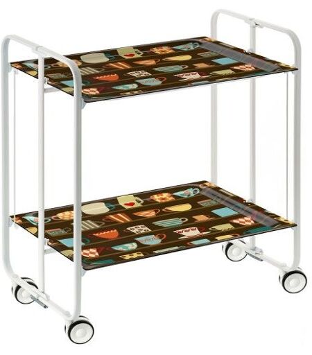 Don Hierro - Table Roulante Pliante Bauhaus Châssis Blanc, 2 Plateaux