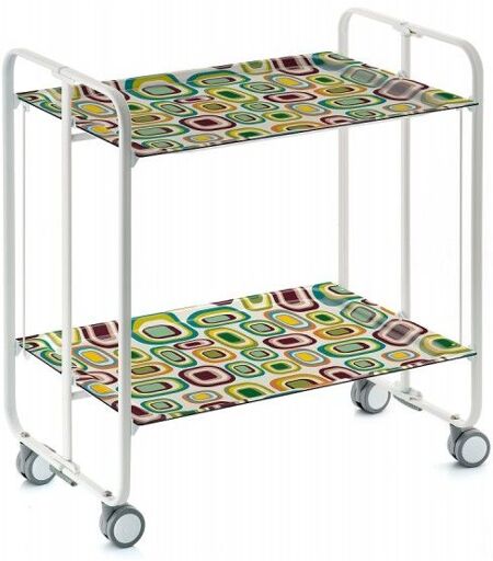 Don Hierro - Table Roulante Pliante Bauhaus Châssis Blanc, 2 Plateaux-80