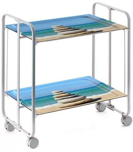 Don Hierro - Table Roulante Pliante Bauhaus, 2 Plateaux, Châssis Gris Aluminium.-62