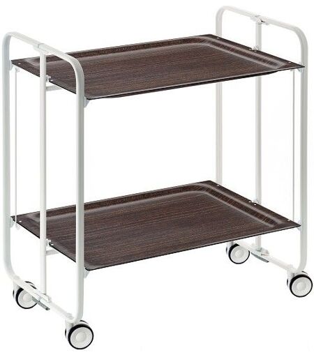 Don Hierro - Table Roulante Pliante Bauhaus Châssis Blanc, 2 Plateaux-Wengé