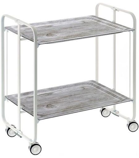 Don Hierro - Table Roulante Pliante Bauhaus Châssis Blanc, 2 Plateaux-Pin Vieilli