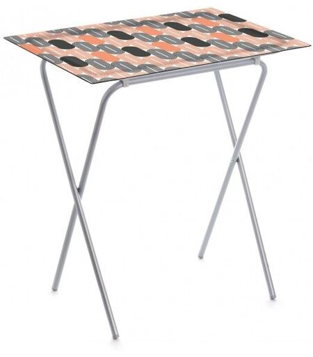 PETITE TABLE PLIANTE AVEC PLATEAU AMOVIBLE, ADATable pliante idéale pour manger dans le fauteuil. Parfaite pour l'utiliser comme table d'appoint sur la terrasse, le balcon, à la piscine, au camping, ect.... Excellente résistance et durabilité.Pliage facile. Les pieds de la table se fixent au plateau supérieur à pression.Le plateau peut être utilisé comme plateau de service une fois que les pieds ont été enlevés.Occupe très peu d'espace une fois pliée.Pieds métallique avec revêtement en poudre de polyester couleur gris aluminium pour éviter la corrosion dans les environnements humides et garantir une longue durée de vie pendant de nombreuses années.Plateau de 62 x 42 cm. en bois stratifié, résistant aux hautes températures, produits de nettoyage...Différents motifs disponibles.Large gamme de décorations de plateaux disponibles.Produit léger et stable. Table facile d'entretien.Résistance aux taches et nettoyage facile. Astuces:- Utilisez un chiffon humide.- N'utilisez pas de produits de nettoyage chimiques.Dimensions de la table ouverte: 65,5 ( Hauteur ) 61,5 (Largeur ) 42 ( Profondeur ) cm.Belle table d'appoint, pratique et compacte. Idéale pour un balcon ou une terrasse. ...
