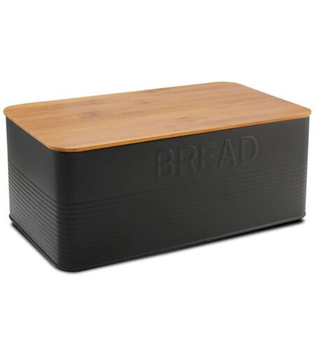 WADIGA Boîte à pain en métal noir et couvercle bambou