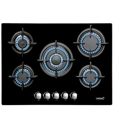 Cata 08046410 Plaque en Verre Modèle L 7005 CI 5 brûleurs Plan de Travail Naturel Injecteurs de gaz Butane Inclus Largeur de 70 cm