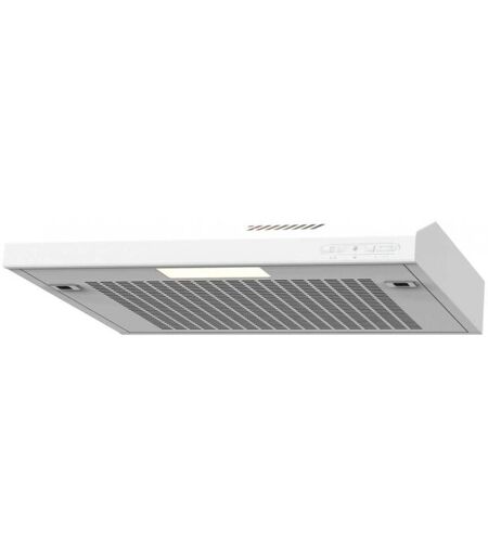 ? Panneau de commande mécanique ? 3 niveaux d'extraction ? Capacité d'extraction maximale - minimale (Règ. (UE) n°65 / 2014) : 195m3 /h - 107m3 / h ? Niveau sonore (Reg. (EU) n°65 / 2014) : 56dB (A), maximum : 69dB (A) ? Moteur tangentiel. Extra calme. Consommation électrique maximale 65W ? Eclairage LED E-14 ? Système d'installation facile ? Filtres lavables au lave-vaisselle ? Fini en acier inoxydable / blanc Pression max. 325 Pa ? Décharge 120 mm ? Classe d'efficacité énergétique : C ...