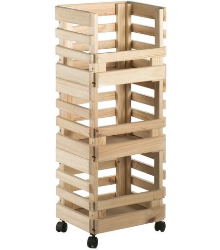 Description générale Resserre à légumes en pin massif composée de trois caisses empilables sur roulettes, idéale pour un rangement pratique et mobile. La structure en bois naturel non verni permet une personnalisation selon vos goûts. Spécifications techniques Matière : Pin massif Dimensions : 38 cm (largeur) x 30 cm (profondeur) x 90 cm (hauteur) Section de bois : 37 mm x 20 mm Poids : 8,80 kg Certifications : PEFC (gestion durable des forêts) Finition : Brut (non verni) Éléments livrés : 3 caisses empilables et 4 roulettes Compatibilité et accessoires Compatible avec d'autres produits de la série Evolution d'Astigarraga Kit Line (étagères, penderies, boîtes, coffres) Installation Livré en kit, montage simple et rapide Utilisation Idéal pour trier et ranger des fruits, légumes, ustensiles de cuisine, matériel de bureau, vêtements, chaussures, etc. Adapté à divers espaces : cuisine, couloir, chambre, bureau, cellier ...