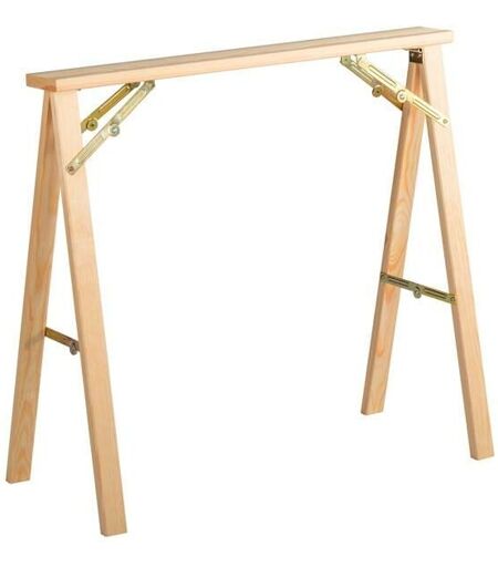 Tréteau KIPLI pliable en bois de pin massif Certifié Pefc et fini en brut. Measures 73,5x79,5x40 cm (hauteur/largeur/profondeur). Section bois 40x20mm. ésistence 250kg. ...