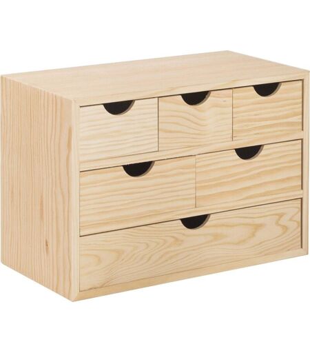 Description générale Découvrez le Mini rangement bloc en pin brut avec tiroirs, un accessoire de rangement à la fois élégant et pratique. Ce bloc de rangement compact, avec ses dimensions de 40 x 20 x 28 cm, offre un espace de stockage optimal grâce à ses 6 tiroirs. Il est idéal pour organiser divers objets tels que des fournitures de bureau, des bijoux ou des accessoires de couture. Prêt à être peint ou verni, il s'adapte parfaitement à votre décoration intérieure. Spécifications techniques Matière principale : Pin rectifié Couleur : Marron Hauteur : 28 cm Largeur : 40 cm Profondeur : 20 cm Nombre de tiroirs : 6 Poids : 4.486 kg Charge maximale supportée : 5 kg Livré monté : Oui Certification : Bois certifié PEFC Compatibilité et accessoires Idéal pour le rangement de documents, papiers, bijoux, matériel de bureau et d'autres petits objets. Peut être placé sur un bureau, une étagère ou une table d'appoint. Compatible avec des plateaux et chevalets de la marque Astigarraga Kit Line. ...