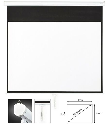 Écran de projection manuel Fonestar PPMA-43084-BA 84" format 4:3, taille de l'écran 1,7 x 1,8 mètres