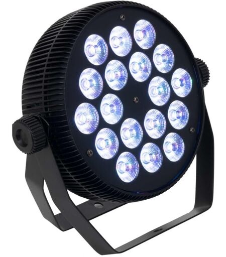 Spot PAR LED extra-plat RGBW 18 x 10 W , LED RGBW ( 4 en 1) Design extra-plat et boîtier robuste ofaluminium Compatible avec le protocole DMX DMX Éclairage de haute puissance pour l'éclairage professionnel des scènes et des objets. Support de fixation dewithdouble arc pour un montage au sol ou un ancrage aérien. Mode automatique, mode manuel (réglage stroboscopique couleur et blanc), son activé, contrôle DMX, mode maître/esclave. 4 u 8 canaux pour DMX Construction en aluminium CARACTÉRISTIQUES TECHNIQUES : Projecteur PAR LED extra flat RGBW. Fonctionnement en mode automatique, manuel (réglage de la couleur et du stroboscope ), son byactivation, DMX contrôle et maître/esclave. Sélection of colours, strobe et mode ofoperation via l'écran intégré. Sélection des couleurs, du gradateur, du stroboscope et de la vitesse de la transition réglable via un contrôleur DMX. Design extra-plat et boîtier robuste de aluminium. Pied dewithdouble arc pour un montage au sol ou un ancrage aérien. Idéal ...