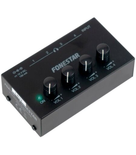 Amplificateur/distributeur de casque d'écoute 1 entrée et 4 sorties avec contrôle de volume indépendant SPÉCIFICATIONS TECHNIQUES : INPUT 1 entrée casque/ligne stéréo, jack 6'3 mm. SORTIES 4 sorties casque stéréo, jack 6'3 mm CONTRÔLES Contrôle de volume indépendant sur chaque sortie INDICATEURS Témoin d'alimentation ALIMENTATION 12 V DC, 150 mA avec l'adaptateur inclus MESURES 104 x 47 x 57 mm profondeur POIDS 0,2 kg ...
