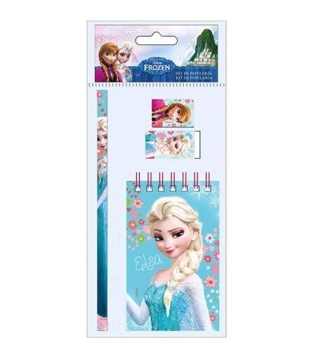 Set de papeterie 4 pièces Anna et Elsa La Reine des Neiges de Disney. Le set comporte: un carnet à spirales, une gomme, un crayon et un taille-crayons. Dès 3 ans. ...
