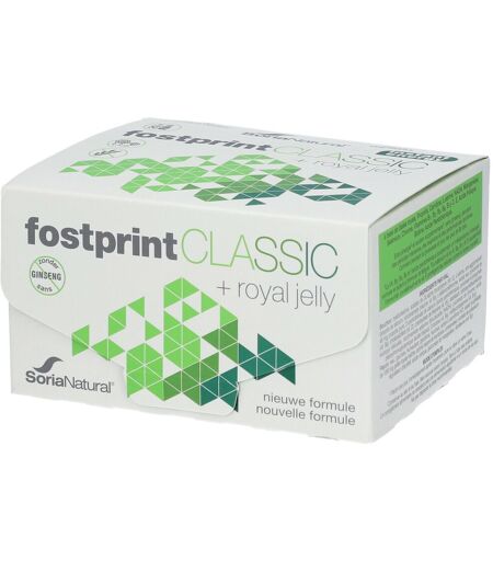Complément alimentaire à utiliser dans le cadre d’une alimentation variée, équilibrée et d’un mode de vie sain.Qu’est-ce que le Fostprint CLASSIC?Le Fost print est un phytonutri-énergétique, sans ginseng, qui apporte de l’extra énergie et un soutien optimal pendant des périodes intenses et fatigantes.Complément idéal pendant la grossesse et pour les plus de 65 ans. Convient aux personnes, comme les étudiants, les managers, les ouvriers, les chauffeurs, les sportifs, e.a.Le Fost print CLASSIC se compose des ingrédients naturels gelée royale et propolis avec plusieurs vitamines et acides aminés. Grâce à sa composition unique, le Fost print CLASSIC est idéal pour booster l’énergie des personnes avec un besoin énergétique élevée, commependant la grossesse et l’allaitement, après une période de maladie, pour les plus de 65 ans, lors de périodes fatigantes etc…. Le produit est facile à utiliser et est immédiatement assimilé grâce à sa forme liquide.Qu’est-ce que le Fostprint CLASSIC?Le Fost print est un phytonutri-énergétique, sans ginseng, qui apporte de l’extra énergie1 et un soutien optimal2 pendant des périodes intenses et fatigantes.Complément idéal pendant la grossesse et pour les plus de 65 ans. Convient aux personnes, comme les étudiants, les managers, les ouvriers, les chauffeurs, les sportifs, e.a.Le Fost print CLASSIC se compose des ingrédients naturels gelée royale et propolis avec plusieurs vitamines et acides aminés. Grâce à sa composition unique, le Fost print CLASSIC est idéal pour booster l’énergie des personnes avec un besoin énergétique élevée, commependant la grossesse et l’allaitement, après une période de maladie, pour les plus de 65 ans, lors de périodes fatigantes etc…. Le produit est facile à utiliser et est immédiatement assimilé grâce à sa forme liquide.Quelle est la composition de Fostprint CLASSIC?Le Fost print CLASSIC est composé de gelée royale et de propolis. En plus de ces 2 ingrédients indispensables, le Fost print CLASSIC contient également de la L-sérine et de la L-carnitine. La L-sérine est un acide aminé qui contribue à différent processus biologiques. La formule synergique contribue à un effet optimal et rapide de ces substances.Le Fost Print CLASSIC contient également des vitamines importantes. La vit. B2, B3, B6 et l’acide pantothénique soutiennent un métabolisme énergétique normal et aident à diminuer la fatigue. Le sélénium et la vit. B6, B12 et D soutiennent l’immunité. Le sélénium et la vit. E aident à protéger les cellules contre le stress oxydatif.Quand l’utiliser?Le Fost print CLASSIC est conseillé aux personnes avec un besoin énergétique élevé qui ont besoin de plus énergie et d’un apport de nutriments.Il s’agit, par exemple, de femmes enceintes et allaitantes, de personnes de plus de 65 ans, de personnes fatiguées ou affaiblies, après une maladie ou en cas de manque d’énergie.Grâce à sa forme liquide et son assimilation rapide, le Fost print convient à chaque moment de la journée, aussi sur la route... ...