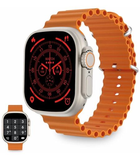 Ksix Urban Plus - 49 mm - Montre connectée avec bracelet - silicone - de couleur orange - affichage 2.05" - Bluetooth