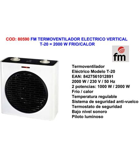 FM - Ventilateur tour électrique T-20 2000 w chaud et froid