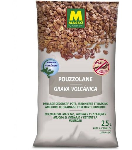 Le gravier volcanique est un matEriau naturel, hautement poreux et trs lEger qui, mElangE avec le substrat, permet d'amEliorer le drainage, de conserver l'humiditE et d'allEger le substrat. En arrire-plan empche l'inondation des racines. En surface, empche la prolifEration des mauvaises herbes, conserve l'humiditE et protge les plantes de l'attaque des escargots et des limaces gr‰ce ˆ la rugositE de sa surface. Dans Terraos et Vivarios, il aide ˆ conserver et ˆ augmenter l'humiditE et est Egalement utilisE comme ElEment dEcoratif. Dans les Etangs, mElangEs ˆ du sable, il est idEal comme substrat pour le dEveloppement de plantes aquatiques telles que les nen‹¼fares, les criques, l'iris, etc. Format: 2,5 L. ...