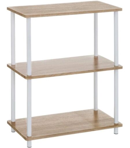 Étagère 3 plateaux en métal blanc et bois MDF. Espace entre les étagères: 33.5cm. Dimensions : 60x30x80cm Couleur : Blanc et bois Matière : MDF et métal ...