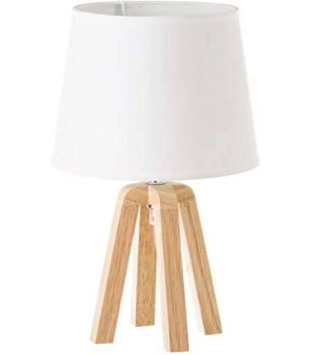 WADIGA Lampe à Poser Trépied Bois et Abat-jour Blanc - Hauteur 34.5cm