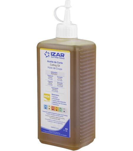 Huile de coupe liquide 500 ML - IZAR 53934Huile de coupe à usage général haut de gamme, formulée à base d'huiles végétales et sans chlorures. Pour des applications de coupe en général (perçage, taraudage, fraisage, tournage, etc.). Huile émulsifiable hautement concentrée, exempte de chlorures, d'amines secondaires et/ou de nitrites. APPLICATION: Pour des applications d'usinage lourd (Heavy Duty) sur tous les métaux ferreux et pour améliorer les performances sur les aciers inoxydables (INOX ). ...