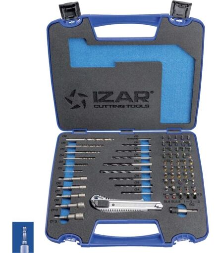 Izar - Coffret Jeu de forets et embouts vissage avec cutter et porte embout magnétique 72 pcs