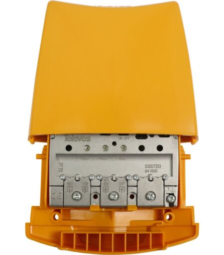 Installation d'un mât amplificateur pour amplifier les signaux de télévision terrestres provenant de plusieurs antennes. Il possède 3 entrées avec amplification dans toutes les bandes. L'amplificateur est alimenté en 24Vdc par le câble coaxial de sortie. Amplification séparée de chaque bande Réglage manuel du gain élevé Système de connexion EasyF Châssis hautement blindé, fabriqué en Zamak Filtre LTE700/5G pour éliminer les interférences téléphoniques Interrupteur ON/OFF pour permettre le passage du courant continu vers l'entrée UHF pour alimenter un système BOSS. Montage simple. Fixation du mât incluse Boîtier robuste en plastique ABS orange pour une installation en extérieur. SPÉCIFICATIONS TECHNIQUES : FM (88-108Mhz) - BIII/DAB (174-254Mhz) - UHF (470-694Mhz). Gain FM 15dB - BIII/DAB 32dB - UHF 36 dB Plage de régulation du gain 0-15 dB Niveau de sortie 116 dBμV Facteur de bruit 4,5 dB Alimentation électrique 24Vdc / 80 mA 24 Courant d'entrée max. 45mA Indice de protection IP 23 ...