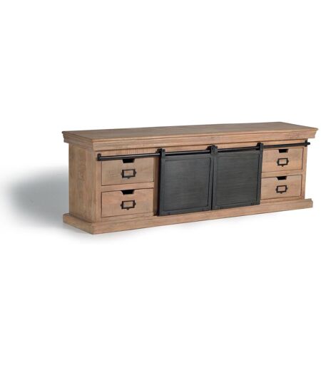 Meuble TV fait à la main en bois de manguier et portes métalliques. La couleur peut différer de la photographie au travail d'un meuble artisanal. ...