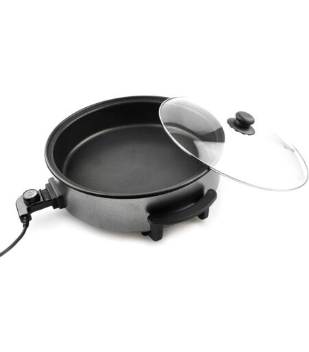 Poêle à pizza. Antiadhésif. Couvercle en verre avec valve. Bouton et poignées en bakélite. Thermostat de température. Pain pizza d'une puissance de 1500 W. Cuisinez tous types d'aliments : paella, pizza, viandes, poissons, ragoûts, etc. Régulateur de température à 5 niveaux selon sur le type d'aliment. Couvercle en verre qui permet de voir l'intérieur, contrôlant le processus de cuisson. Valve de sortie de vapeur qui garantit qu'il n'y a pas de surpression à l'intérieur. Pain à pizza avec surface entièrement antiadhésive. Témoin lumineux d'alimentation. Poignées et bouton en bakélite au toucher froid. Non -Pieds antidérapants avec base en caoutchouc. ...