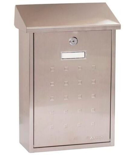 Boîte aux lettres individuelle extérieure de taille moyenne qui s'intègre parfaitement à tout style et type de maison. Avec un toit qui protège la fenêtre d'introduction au courrier contre la pluie et les intempéries. Serrure en façade, facilement accesible. Caractéristiques principales: Taille M (DIN A4): capacité pour des feuilles A4, enveloppes C4, magazines et catalogues A4, etc. Dimensions extérieures (hauteur x largeur x profondeur): 40 x 27 x 10 cm Dimensions de la fenêtre d’introduction au courrier: 25 x 3,4 cm En acier inoxydable: résistance aux intempéries, durabilité et résistance à la corrosion très elevées. Étanche Avec porte-nom sur la porte Comment l'installer? (différentes options) Vissé au mur. Il a 4 trous de fixation au dos (vis de fixation fournies) Sujet à clôture avec le kit de fixation à cloture Arregui C-015 (achat séparé) Sujet à piquet pour installation au sol Arregui STT02 (achat séparé) Qu'est-ce que c'est inclus dans le colis? Le paquet comprend la boîte ...
